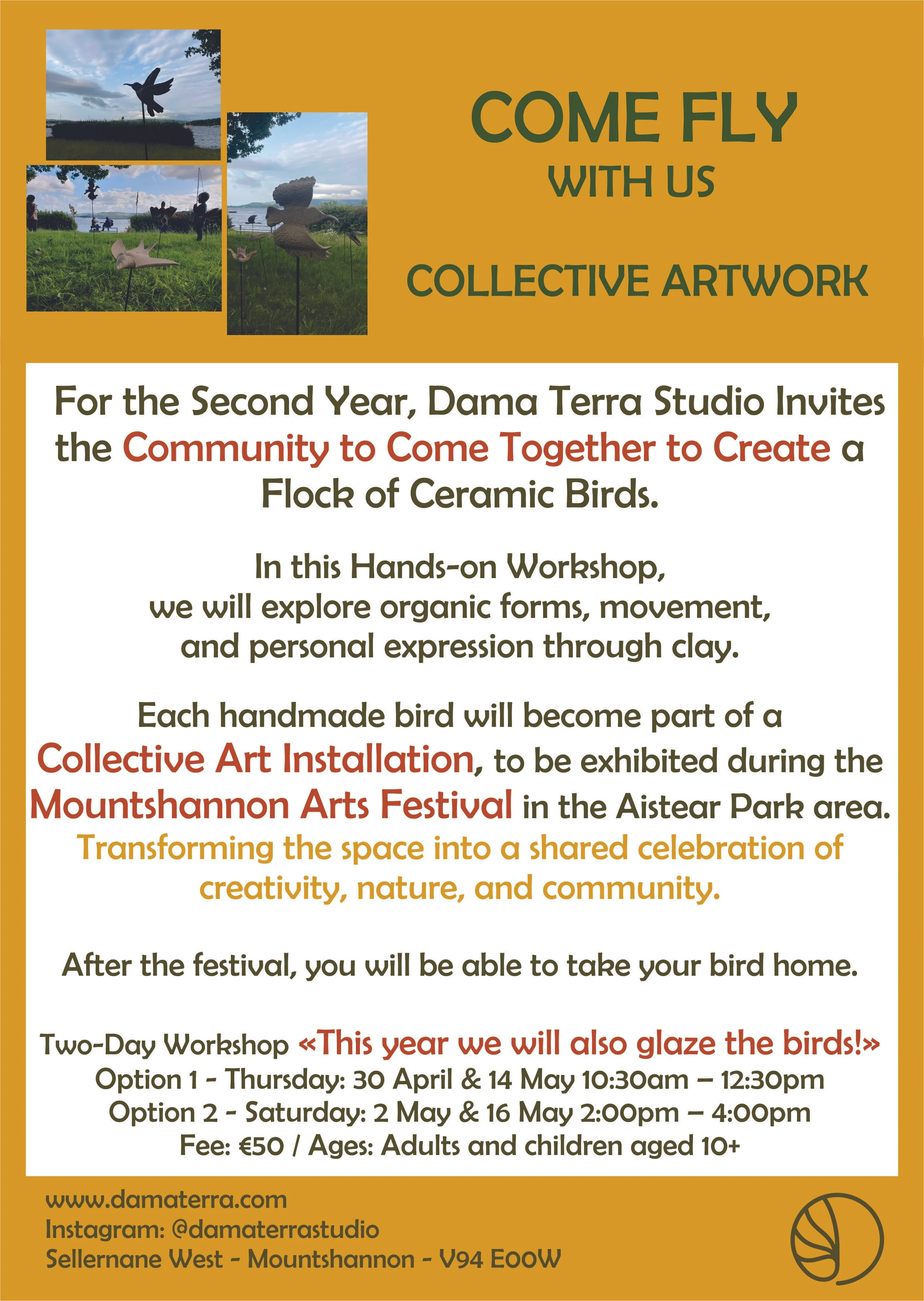 For the second year, Dama Terra Studio invites the Community to come togeter to create a flock of Ceramic Birds.
