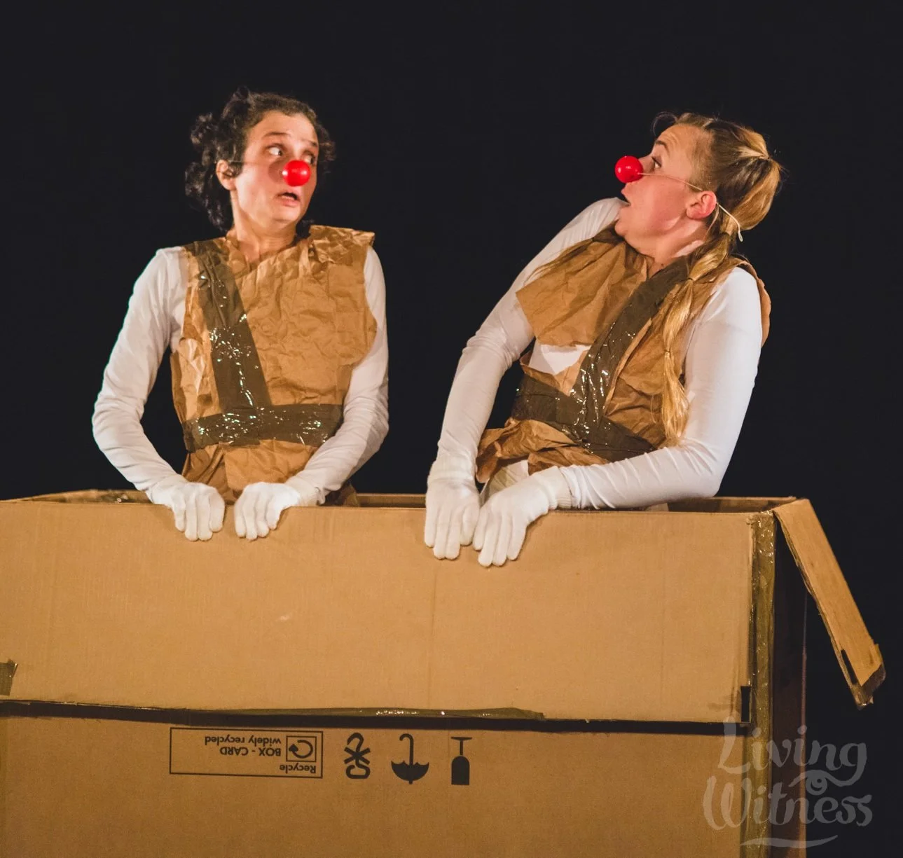 Packing and stacking. Nothing around here changes much. Just an ordinary job, for an ordinary person on an ordinary day....until... she falls into.... A Box! And then everything becomes a little bit peculiar... Appearing, disappearing, hiding, turning upside down. The world around her changes and so does she! A Box is a light, funny, warm and playful theatre performance, influenced and inspired by physical theatre and clowning as well as dance. It is aimed at young audiences, but we've also noticed that it tickled the funny bones of adults too!