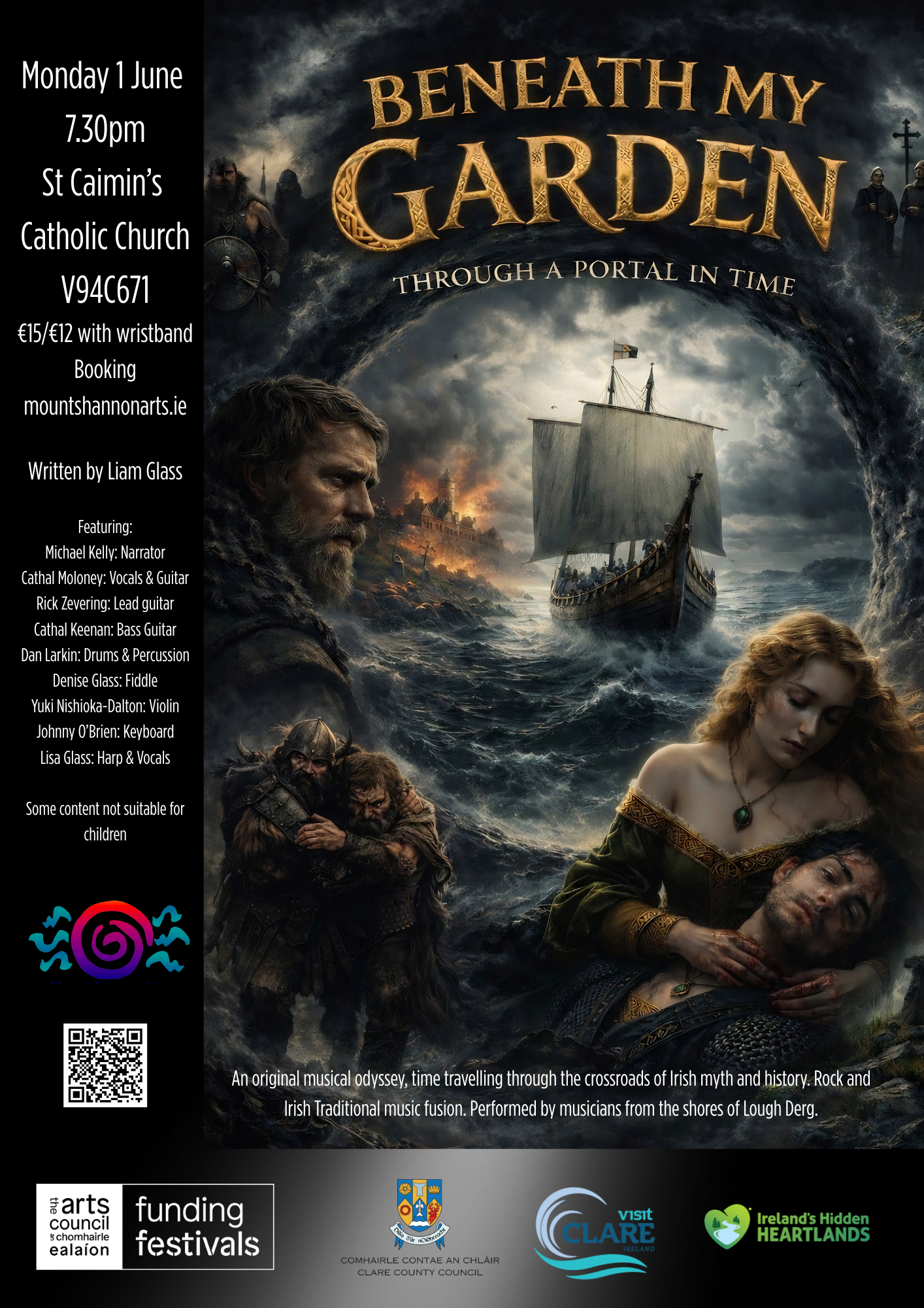 An original musical odyssey, time travelling through the crossroads of Irish myth and history. Rock and Irish Traditional music fusion. Performed by musicians from the shores of Lough Derg.